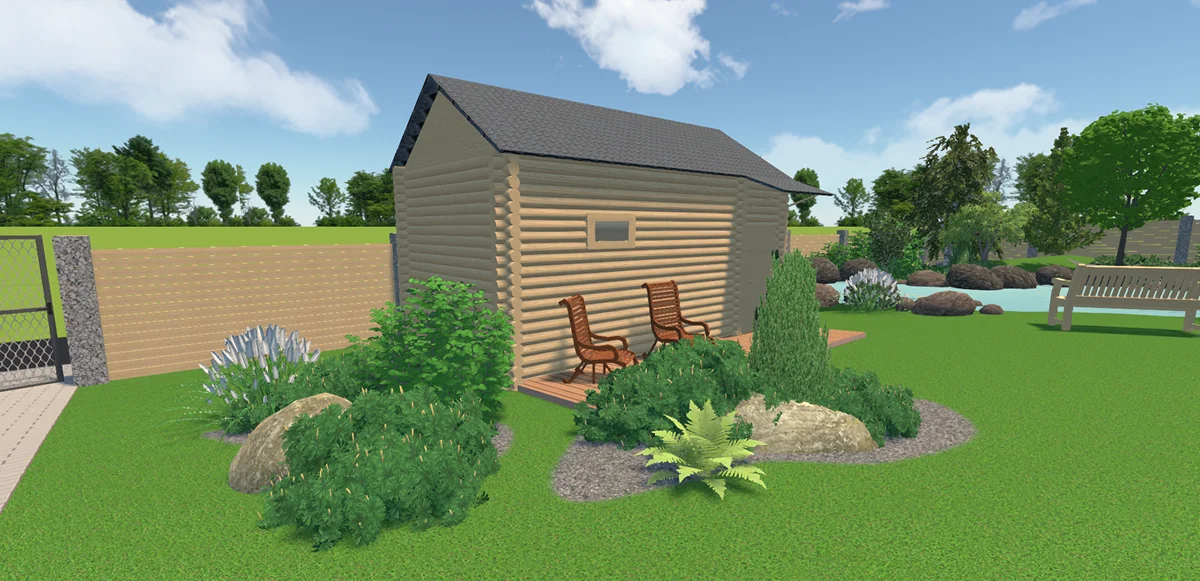 Чтобы горка получилась не только красивой, но и удобной в уходе, лучше начать с проекта. В программе Ландшафтный Дизайн 3D легко рассчитать площадь, количество камней и растений, поэкспериментировать с формами и цветами. А визуализация покажет, как конструкция впишется в эстетику сада вместе с домом, дорожками и мебелью.