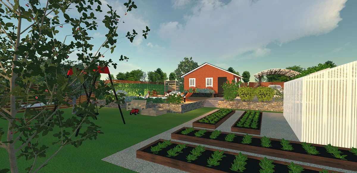 Дорожки для грядок можно сделать из самых разных компонентов — от мульчи и щебня до плитки, камня или композита. Чем основательнее покрытие, тем важнее заранее продумать ширину проходов, их рисунок, сочетание с остальными постройками. Проще всего это сделать заранее на плане. В программе Ландшафтный Дизайн 3D можно собрать схему огородной зоны, подобрать материалы, рассчитать площадь и сразу увидеть, как будет выглядеть оформление тропинок после реализации.