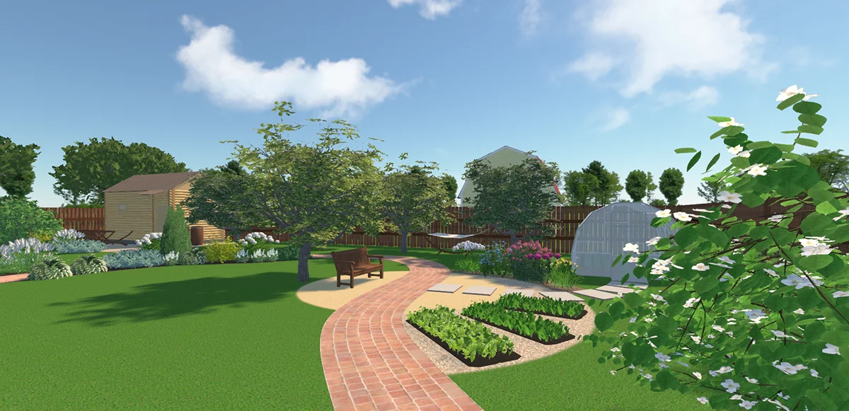 Перед походом в питомник растений важно проверить, как озеленение будет сочетаться с постройками, дорожками, забором и т. д. Чтобы спланировать гармоничные композиции и количество саженцев к покупке сделайте чертеж и визуализацию. В простой программе Ландшафтный Дизайн 3D есть все инструменты для создания полноценного проекта: