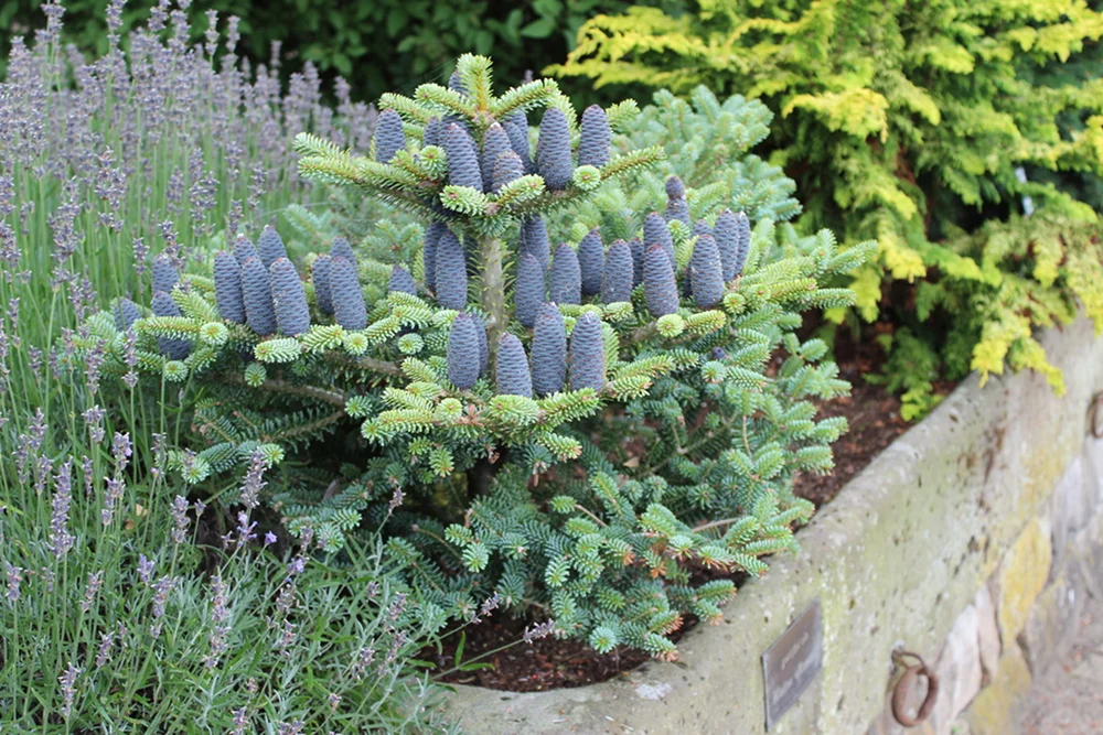 - Пихта корейская — эффектный солитер с аккуратной кроной и нарядными шишками.
