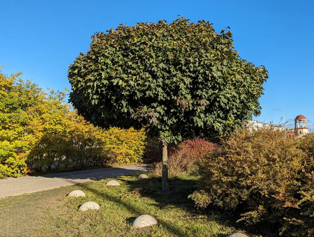 - Клен Глобозум с шаровидной кроной.