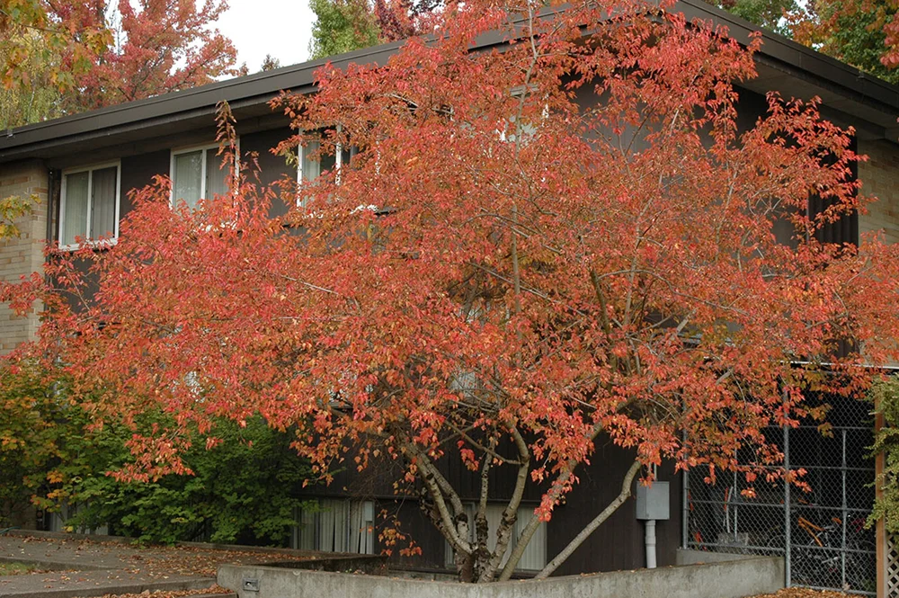 - Клен Гиннала — компактный и яркий в осенний период, отлично смотрится соло.