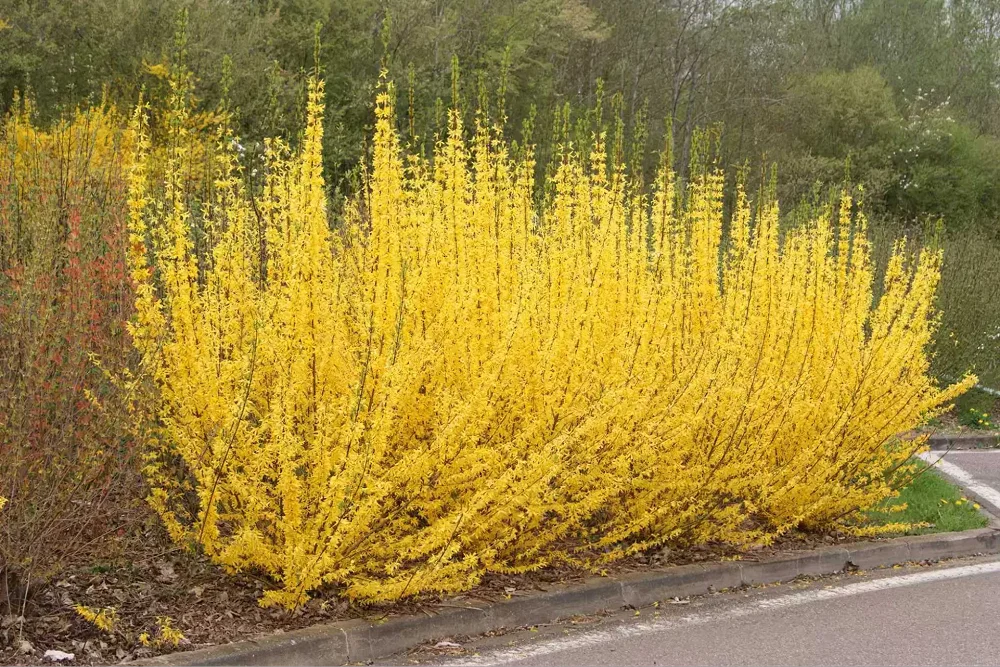 - Форзиция зацветает одна из первых, красочная и заметная.