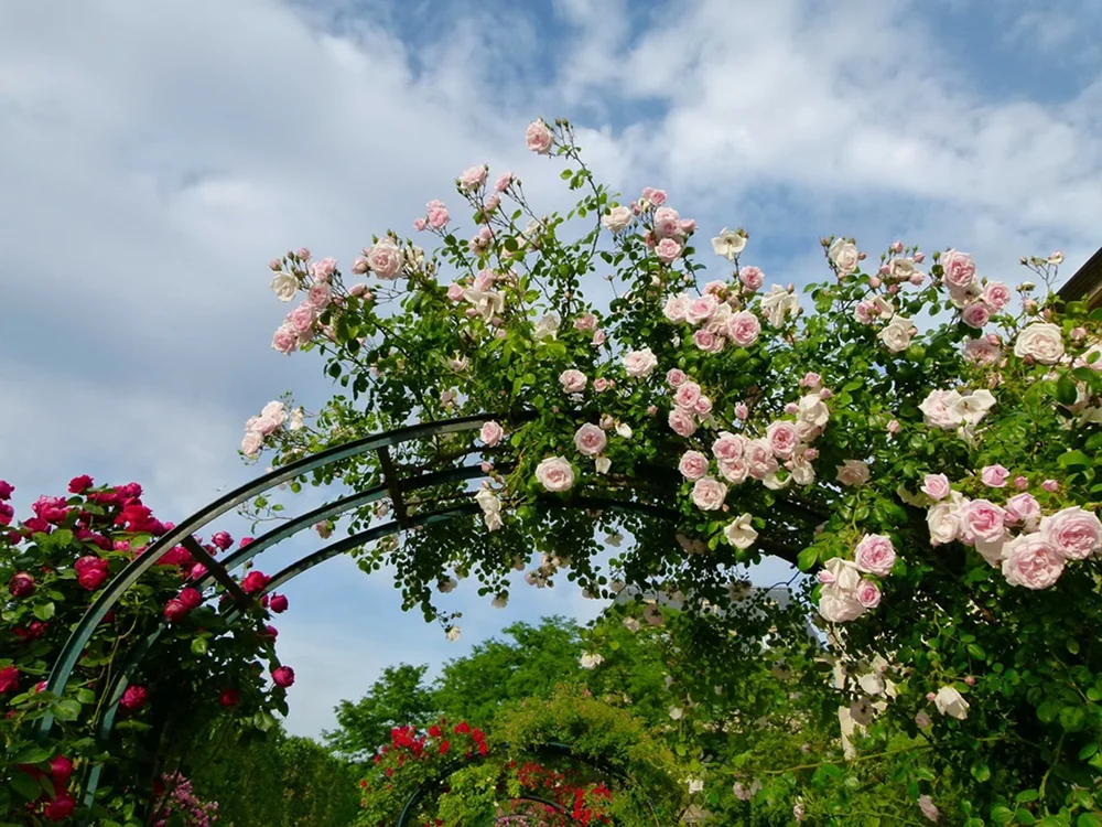 - Клематисы — эффектные лианы для оформления арок и пергол.