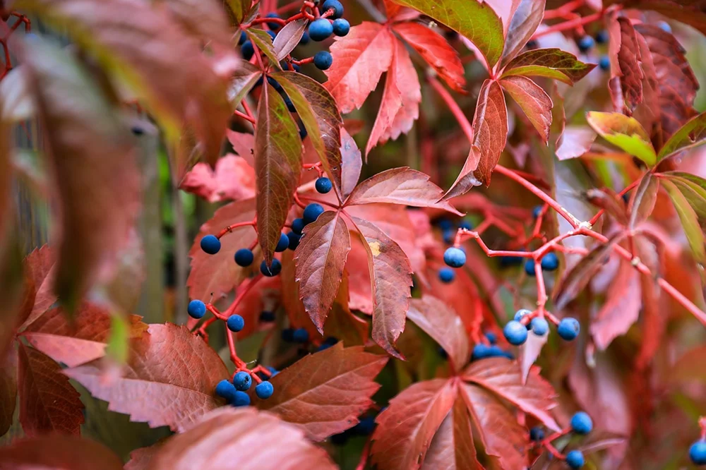- Девичий виноград особенно декоративен осенью, нужен контроль роста.