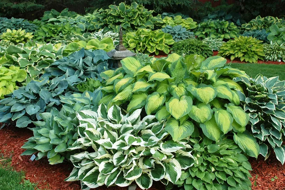 - Хоста с крупной разноцветной листвой.