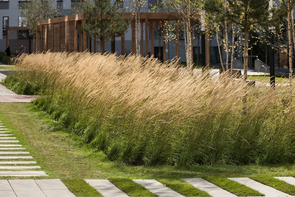 - Вейник — злак, который держит вертикаль и ритм в миксбордере.
