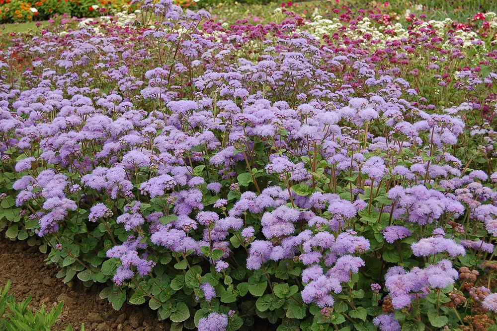 - Агератум подойдет для оформления бордюров вдоль дорожек.
