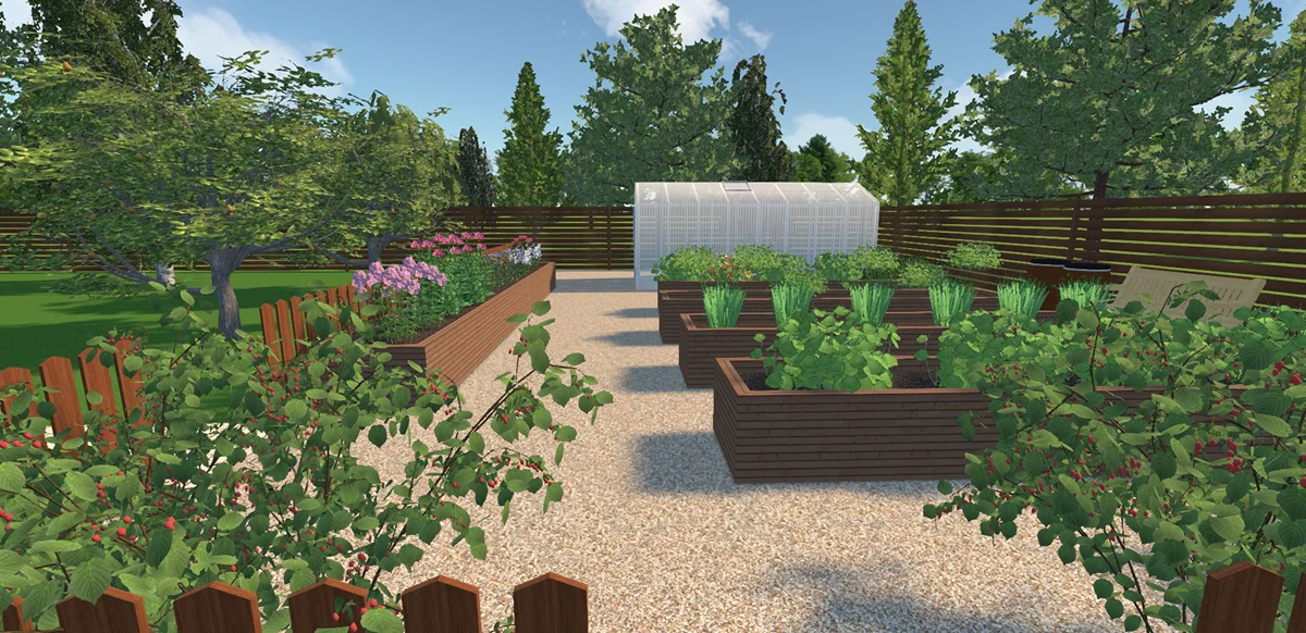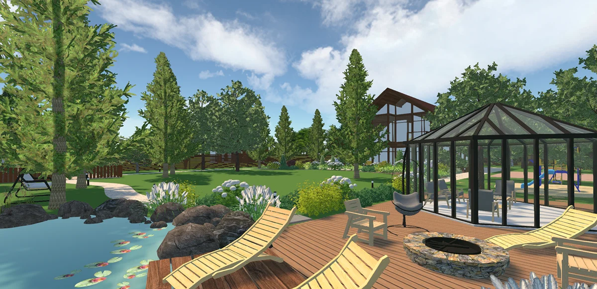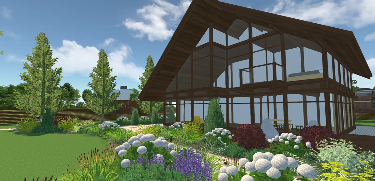 с садом и домом, сделайте проект в простой программе Ландшафтный Дизайн 3D.